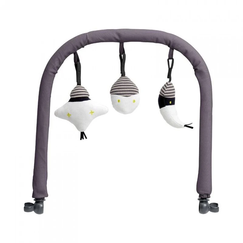 - 3 jouets avec des fonctions différentes (Miroir, grelot, jouet sonore)
